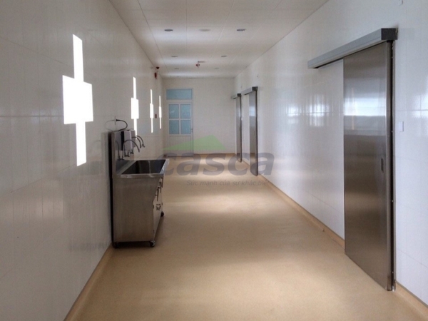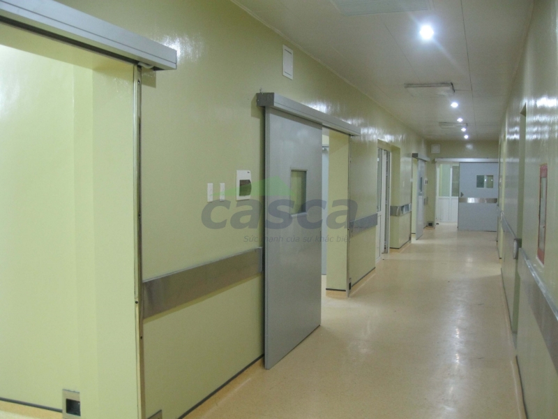 Cửa lùa inox hay cửa trượt inox là loại cửa chuyên dụng trong bệnh viện. Đây là hệ thống cửa được thiết kế đặc biệt cho cửa phòng sạch và phòng mổ, đáp ứng yêu cầu khi cửa đóng phải có độ kín khít cao. Cửa được điều khiển đóng mở tự động bằng bộ điều khiển Woosung, thông qua công tắc cảm ứng hoặc công tắc đá chân.