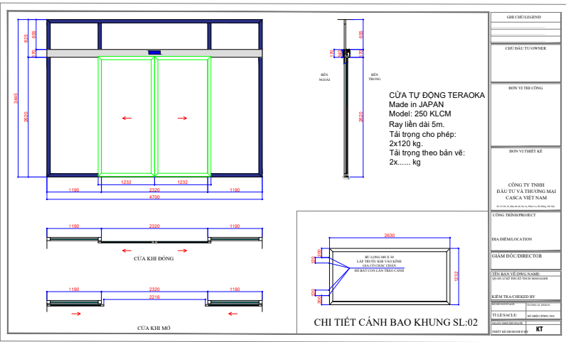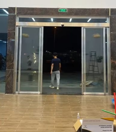 - Hạng mục thi công: Cửa trượt tự động 2 cánh, cánh bao khung inox.