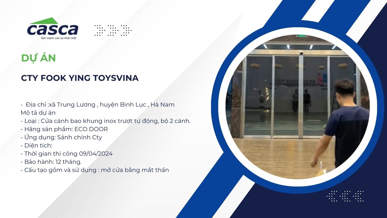 - Tên dự án: Lắp đặt cửa tự động sảnh chính Công ty FOOK YING TOYSVINA