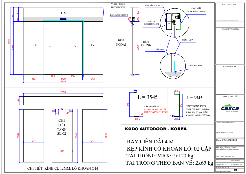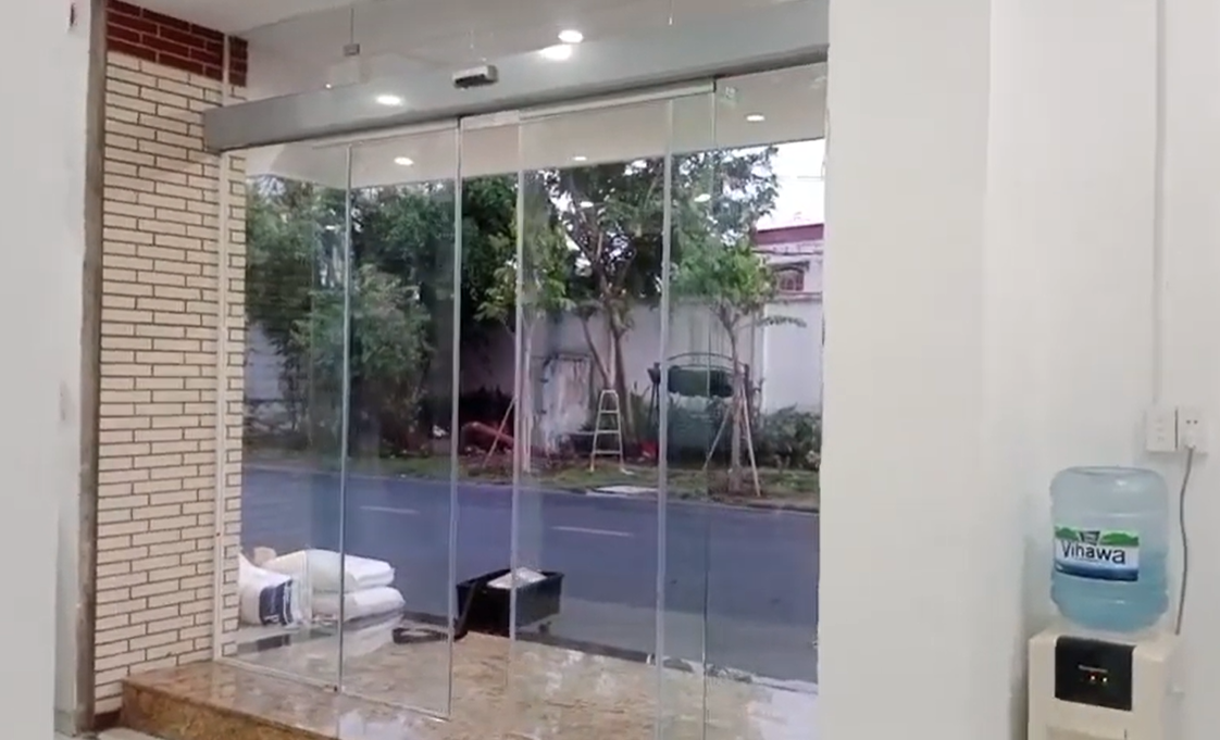 - Hạng mục thi công: Cửa trượt tự động 2 cánh, cánh bao khung.