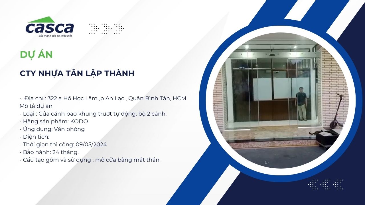 - Tên dự án: Lắp đặt cửa tự động văn phòng Công ty Nhựa Tân Lập Thành