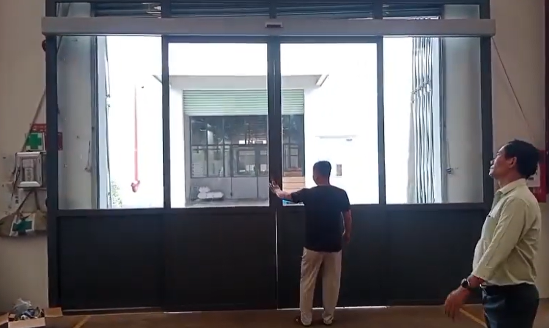 Video ghi lại hoạt động mượt mà, đáng tin cậy của hệ thống cửa tự động tại nhà xưởng.