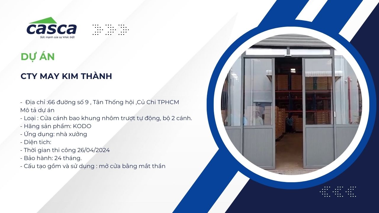 - Tên dự án: Lắp đặt cửa tự động nhà xưởng Công ty may Kim Thành