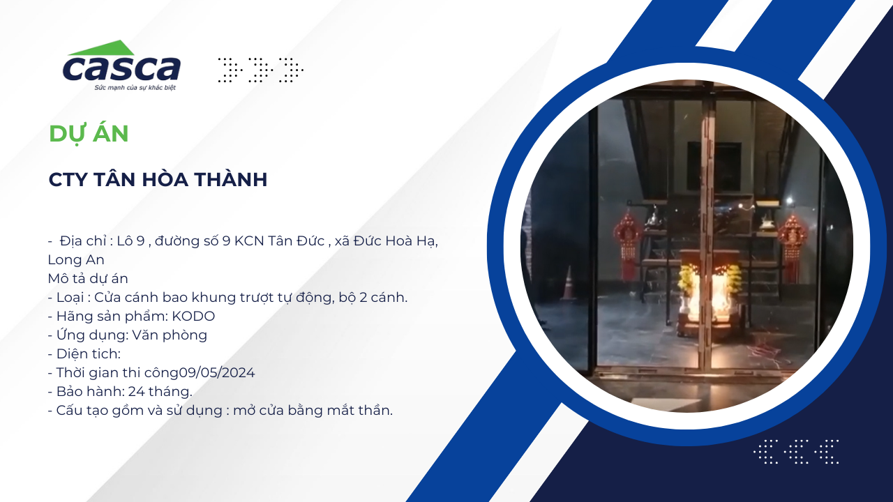- Tên dự án: Lắp đặt cửa tự động cho văn phòng Công ty Tân Hòa Thành