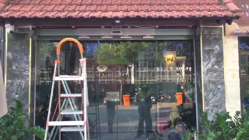 - Quy mô dự án: Lắp đặt hệ thống cửa kính trượt tự động 2 cánh đối xứng.