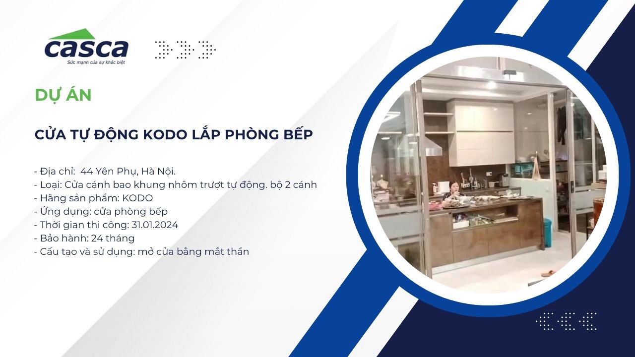 Dự án lắp đặt cửa nhôm kính trượt tự động KODO tại nhà dân ở khu phố cổ Yên Phụ, Hoàn Kiếm, Hà Nội là một trong những công trình nổi bật của CASCA Việt Nam trong năm 2024. Giải pháp được thiết kế nhằm tối ưu không gian sinh hoạt, mang lại sự tiện nghi, hiện đại và an toàn cho khu vực phòng bếp – nơi thường xuyên có hoạt động nấu nướng và di chuyển.