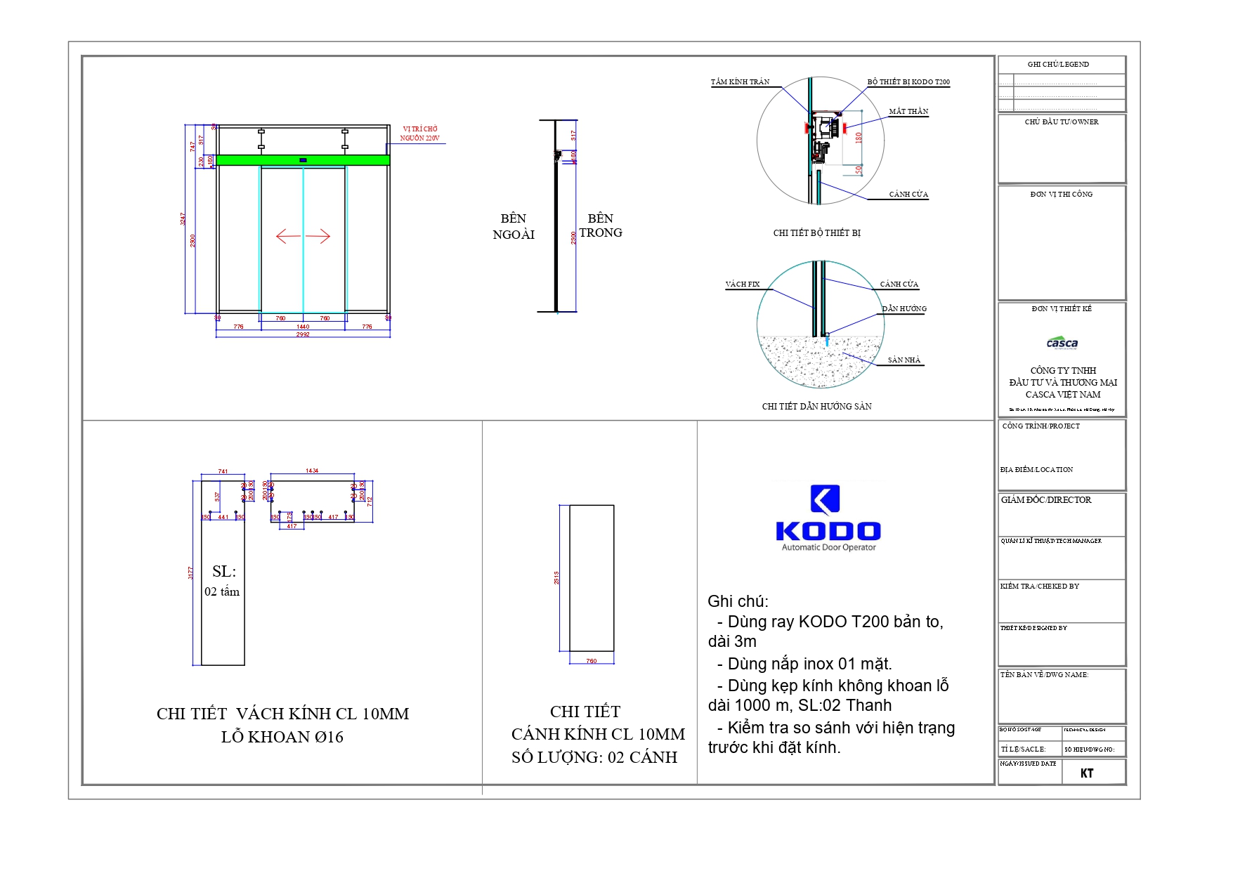 - Model thiết bị: Cửa tự động KODO (Made in Korea)
