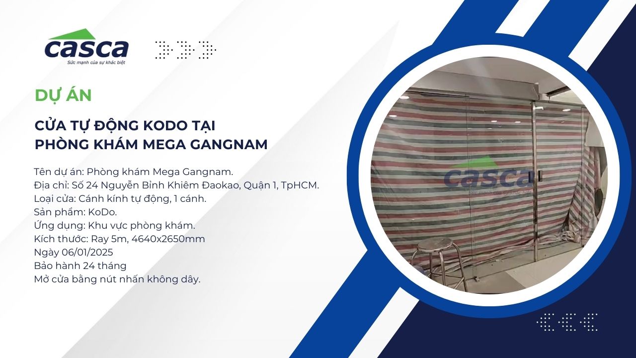 Trong phân khúc y tế và chăm sóc sức khỏe cao cấp, ấn tượng đầu tiên không chỉ đến từ chất lượng dịch vụ mà còn từ sự tinh tế trong kiến trúc. Dự án hệ thống cửa kính tự động tại Phòng Khám Mega Gangnam do CASCA Việt Nam thực hiện là minh chứng cho việc ứng dụng công nghệ để kiến tạo nên một không gian chuyên nghiệp, an toàn và sang trọng bậc nhất.