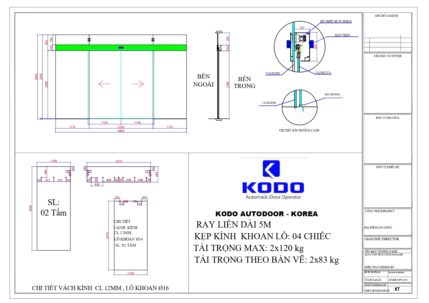 - Thương hiệu sản phẩm: Cửa tự động KODO (Nhập khẩu 100% từ Hàn Quốc)