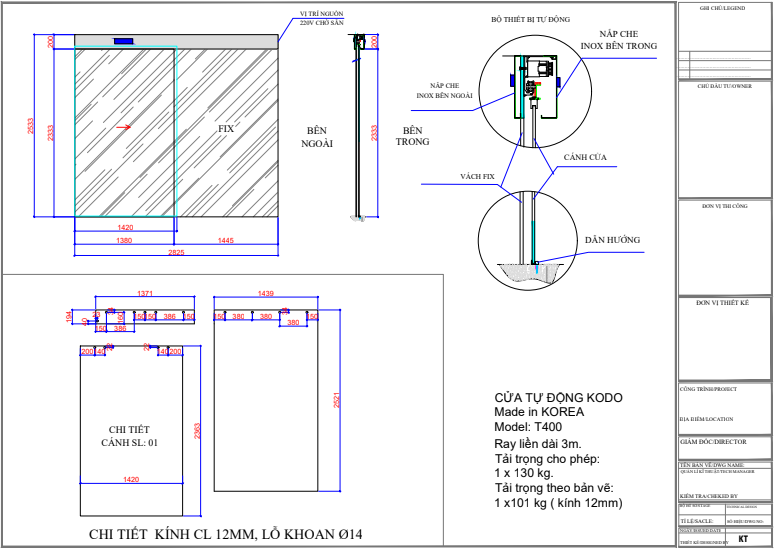 - Hạng mục thi công: Cửa trượt tự động 1 cánh, cánh kính cường lực.