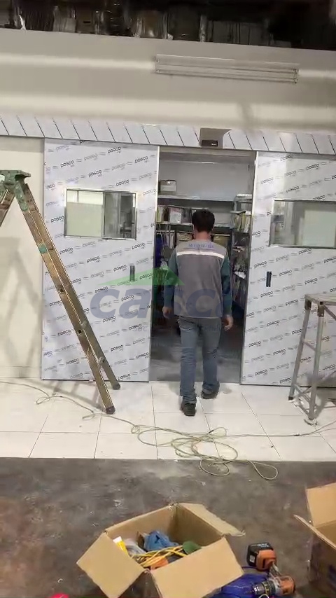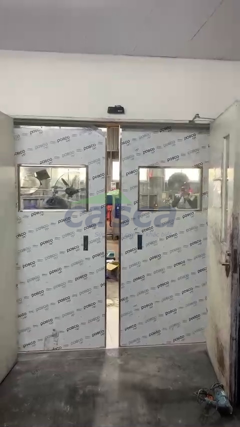 Sau khi khảo sát thực tế mặt bằng và tham chiếu theo bản vẽ kỹ thuật, đội ngũ kỹ sư CASCA đã lựa chọn cửa trượt tự động cánh INOX – giải pháp phù hợp nhất cho môi trường kho công nghiệp có yêu cầu cao về độ bền và độ kín.