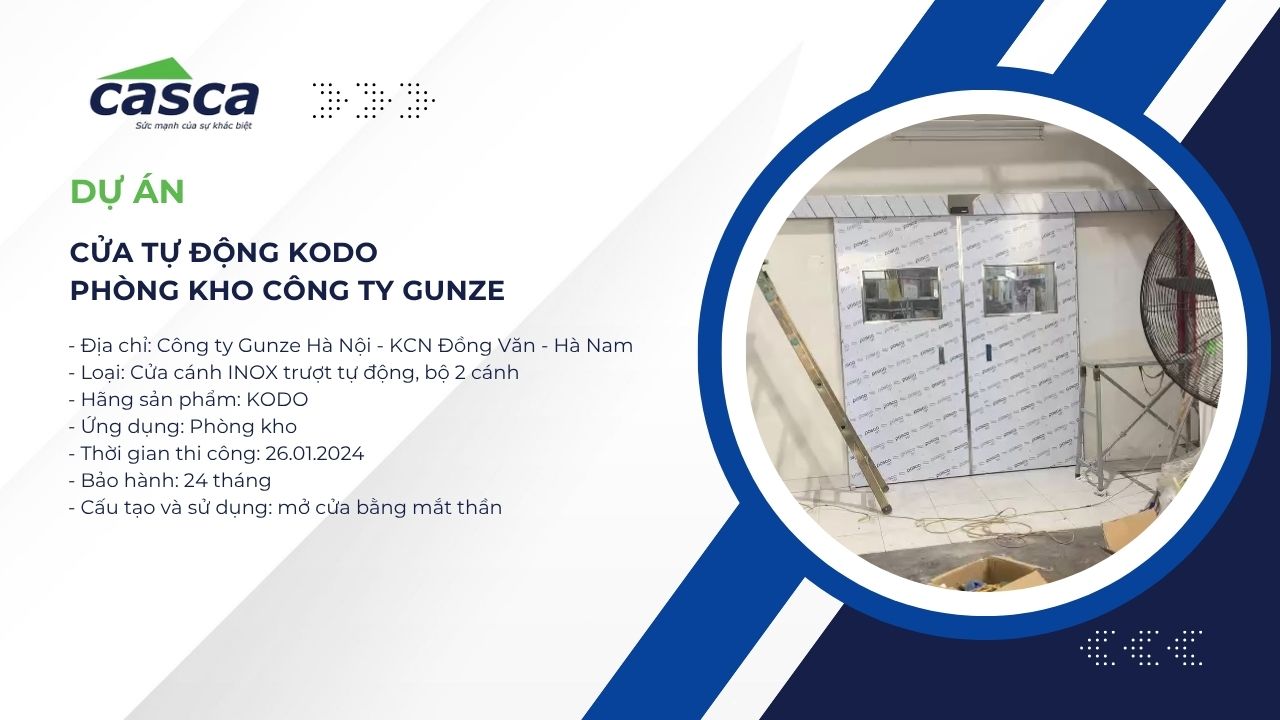 - Dự án: Lắp đặt cửa trượt tự động KODO tại CTY GUNZE Hà Nội