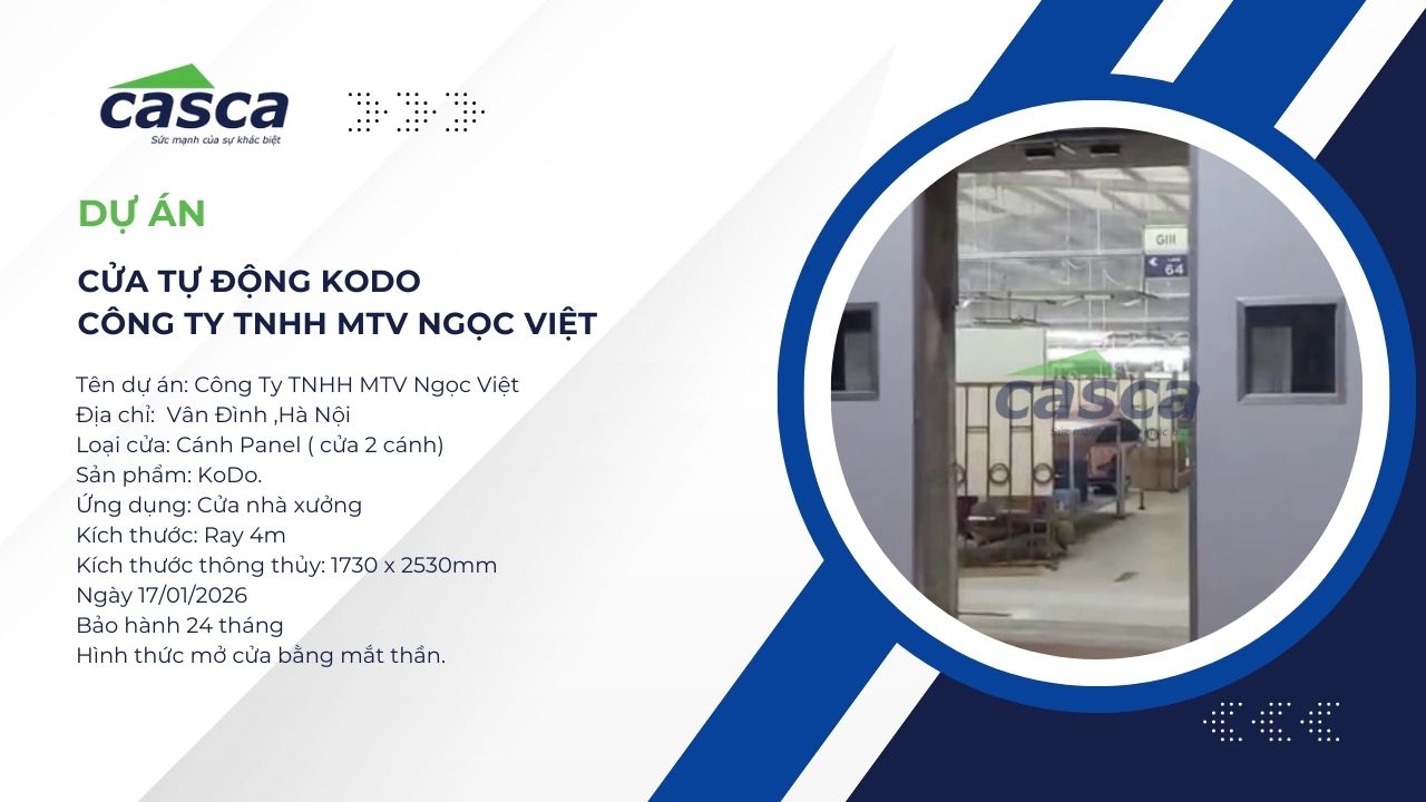 Trong bối cảnh công nghiệp hóa hiện đại, việc nâng cấp cơ sở hạ tầng nhà xưởng là bước đi chiến lược để doanh nghiệp tối ưu hóa năng lực sản xuất. Vừa qua, CASCA Việt Nam đã vinh dự được Công ty TNHH MTV Ngọc Việt lựa chọn làm đối tác triển khai hệ thống cửa tự động nhà xưởng tại Vân Đình, Hà Nội. Dự án không chỉ giải quyết bài toán về lưu thông hàng hóa mà còn nâng cao tiêu chuẩn môi trường làm việc chuyên nghiệp cho nhà máy.