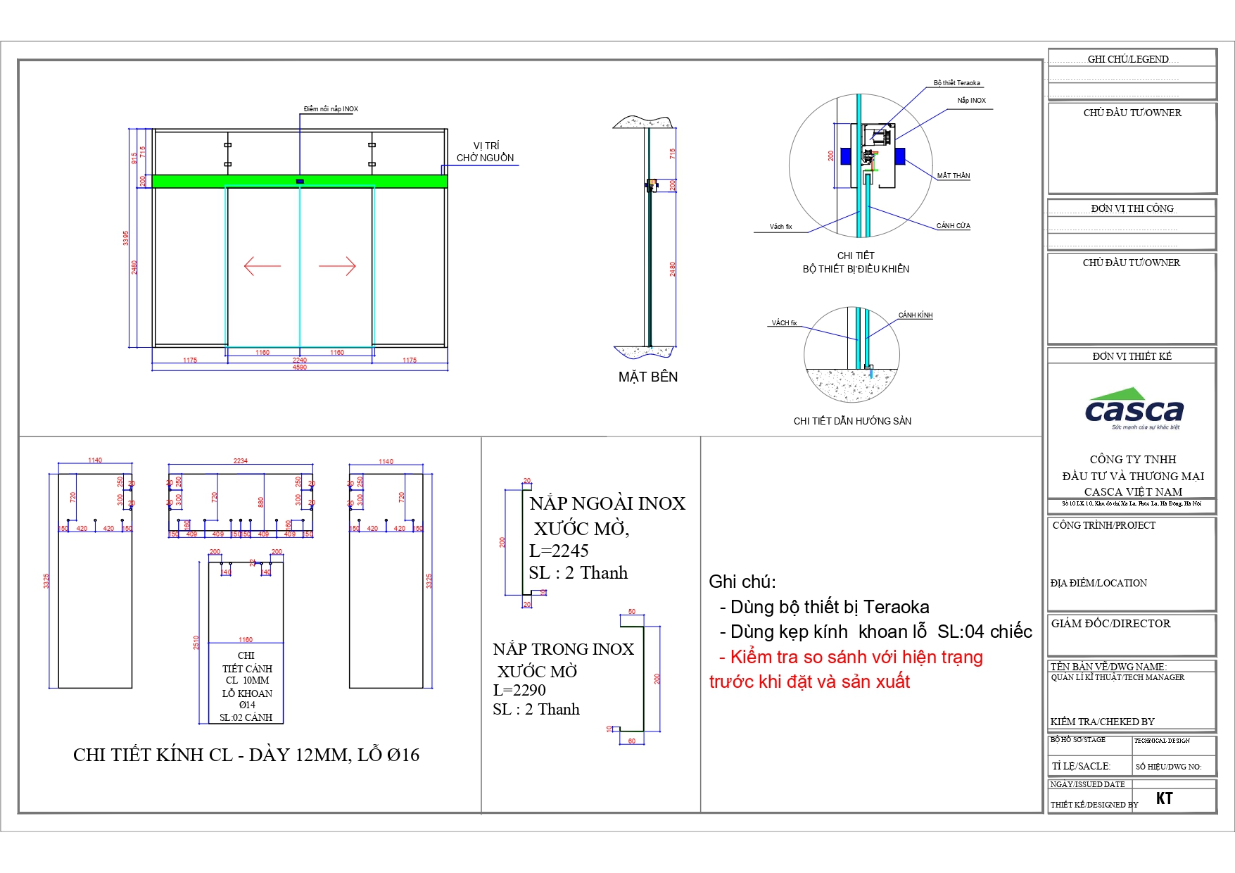 - Hạng mục: Cung cấp và lắp đặt cửa kính trượt tự động TERAOKA 2 cánh