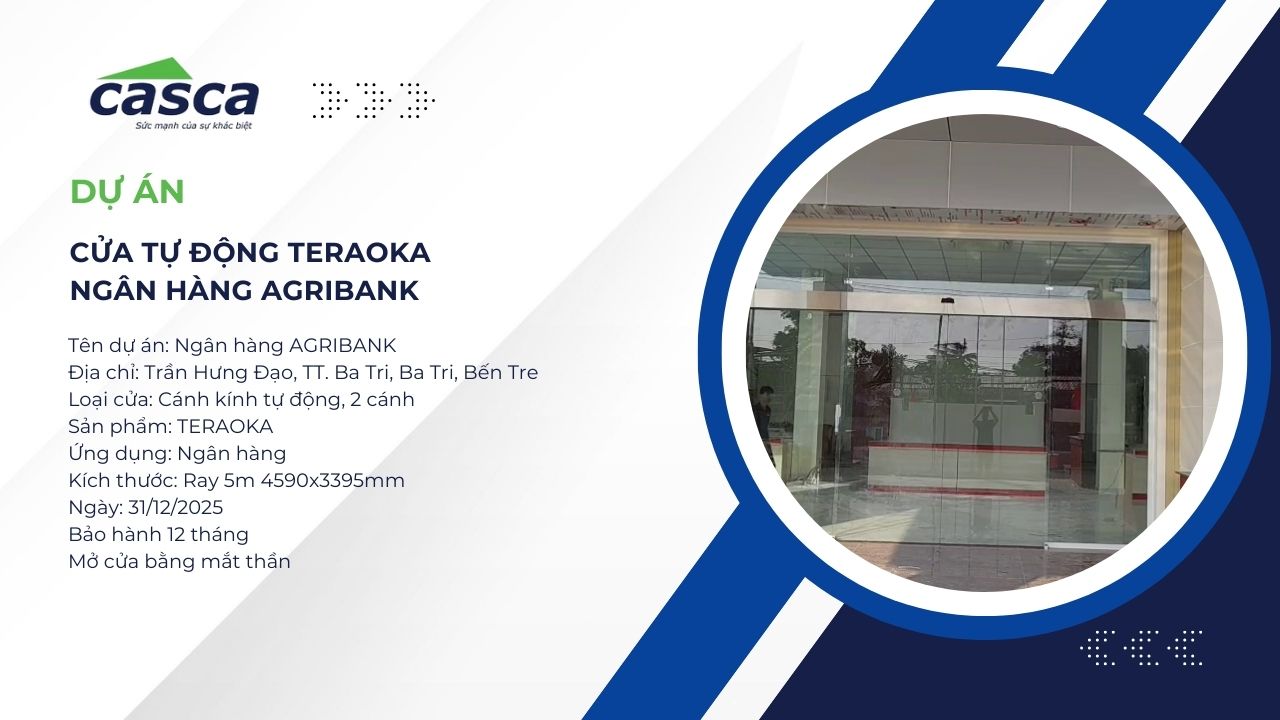 Trong bối cảnh hiện đại hóa cơ sở hạ tầng tài chính, việc nâng cấp hệ thống cửa ra vào không chỉ dừng lại ở yếu tố thẩm mỹ mà còn là bài toán cốt lõi về an ninh và hiệu suất vận hành. Dự án lắp đặt cửa tự động tại Agribank chi nhánh Ba Tri, Bến Tre do CASCA Việt Nam thực hiện là minh chứng điển hình cho giải pháp cửa thông minh, đáp ứng trọn vẹn các tiêu chuẩn khắt khe của ngành ngân hàng.