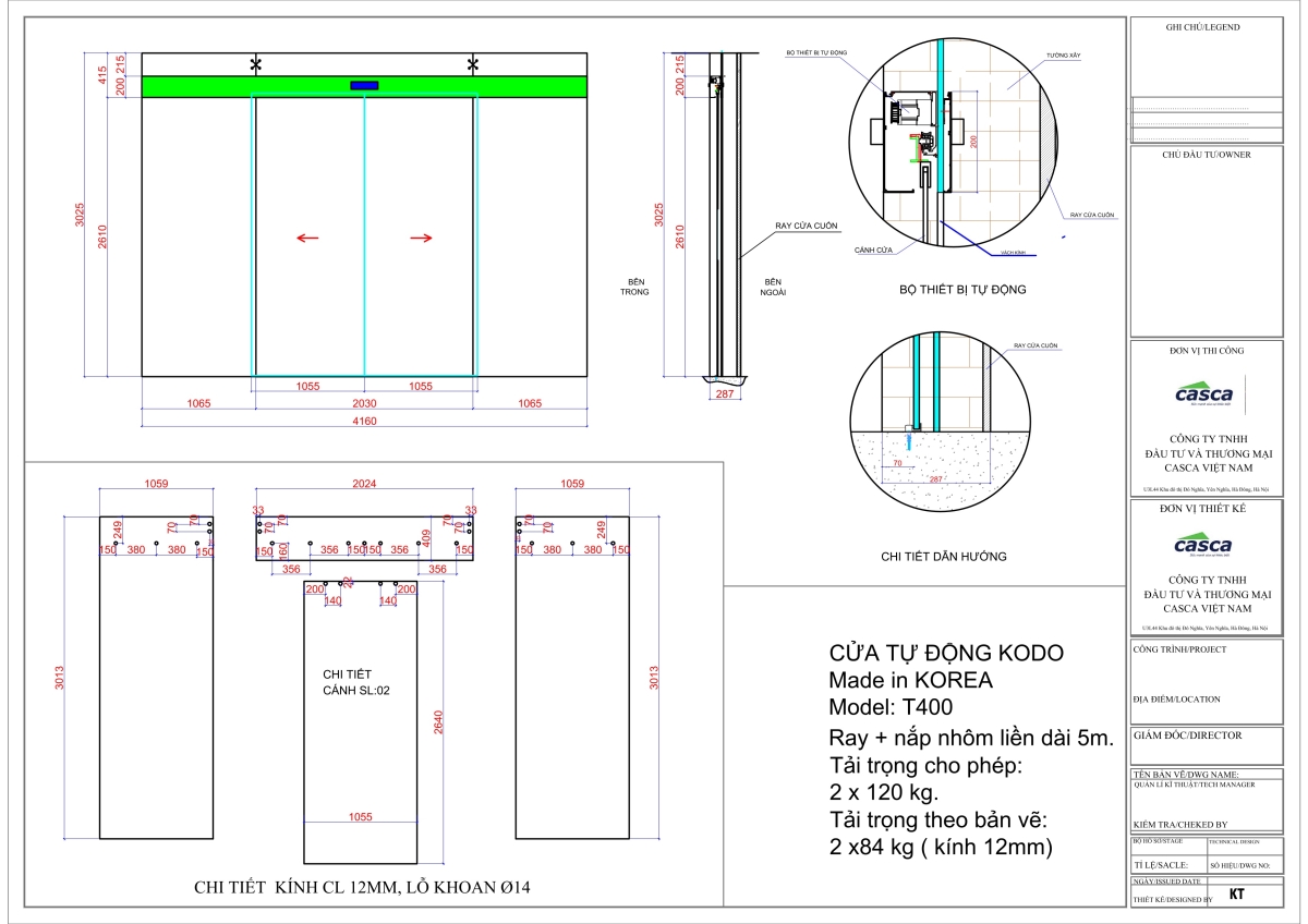 - Khảo sát & đo đạc hiện trạng: Đội ngũ kỹ sư CASCA tiến hành đo đạc chính xác kích thước khung bao, xác định điểm chịu lực, hướng gió và hướng mở cửa tối ưu. Các yếu tố như vị trí cảm biến, góc mở và độ cao lắp đặt cũng được mô phỏng bằng phần mềm CAD để đảm bảo tính tương thích với không gian thực tế.