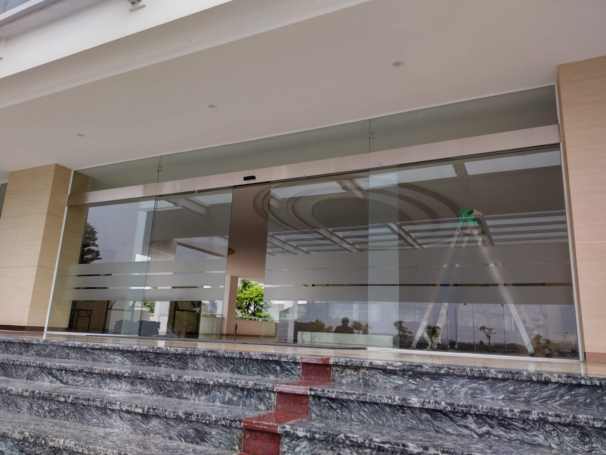 Dưới đây là hình ảnh, video thực tế lắp đăt hoàn thiện bộ cửa tự động cho UBND huyện Gia Lâm.